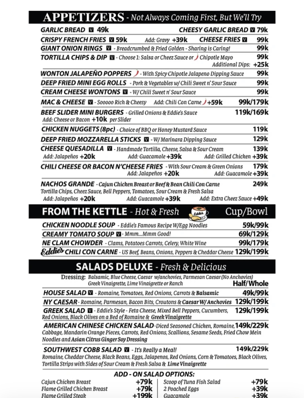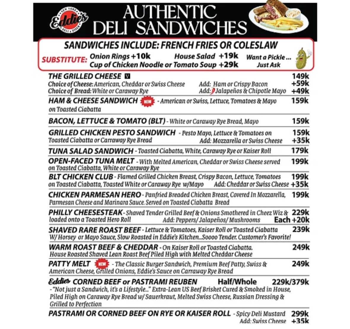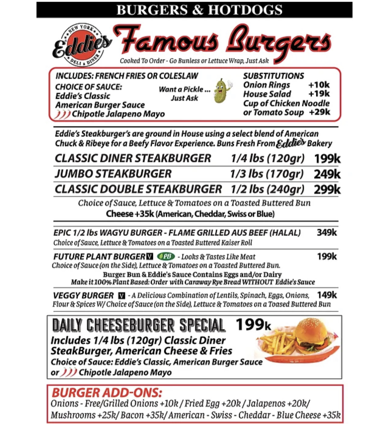 Eddie’s prides itself on making their own items to bring you the American taste. From US Beef to homemade Pastrami and Corned Beef, it gives you that feeling.