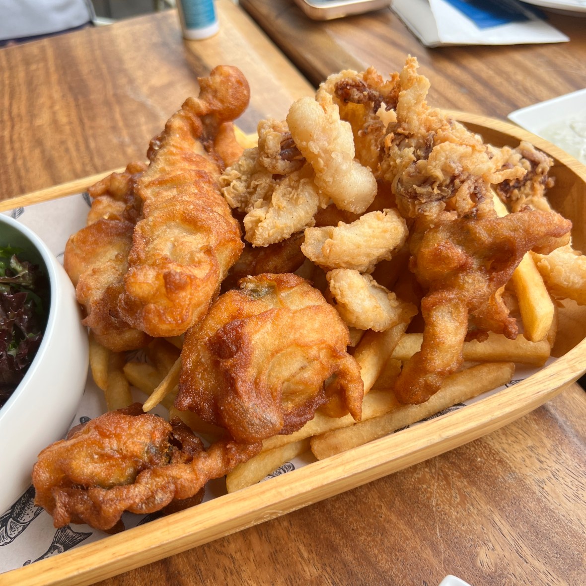 We ordered quite a bit of food, as we started with the Seafood Basket – Fish and Chips, Prawns, Calamari and Scallops. Everything as so fresh and crisp. Just beautifully done.