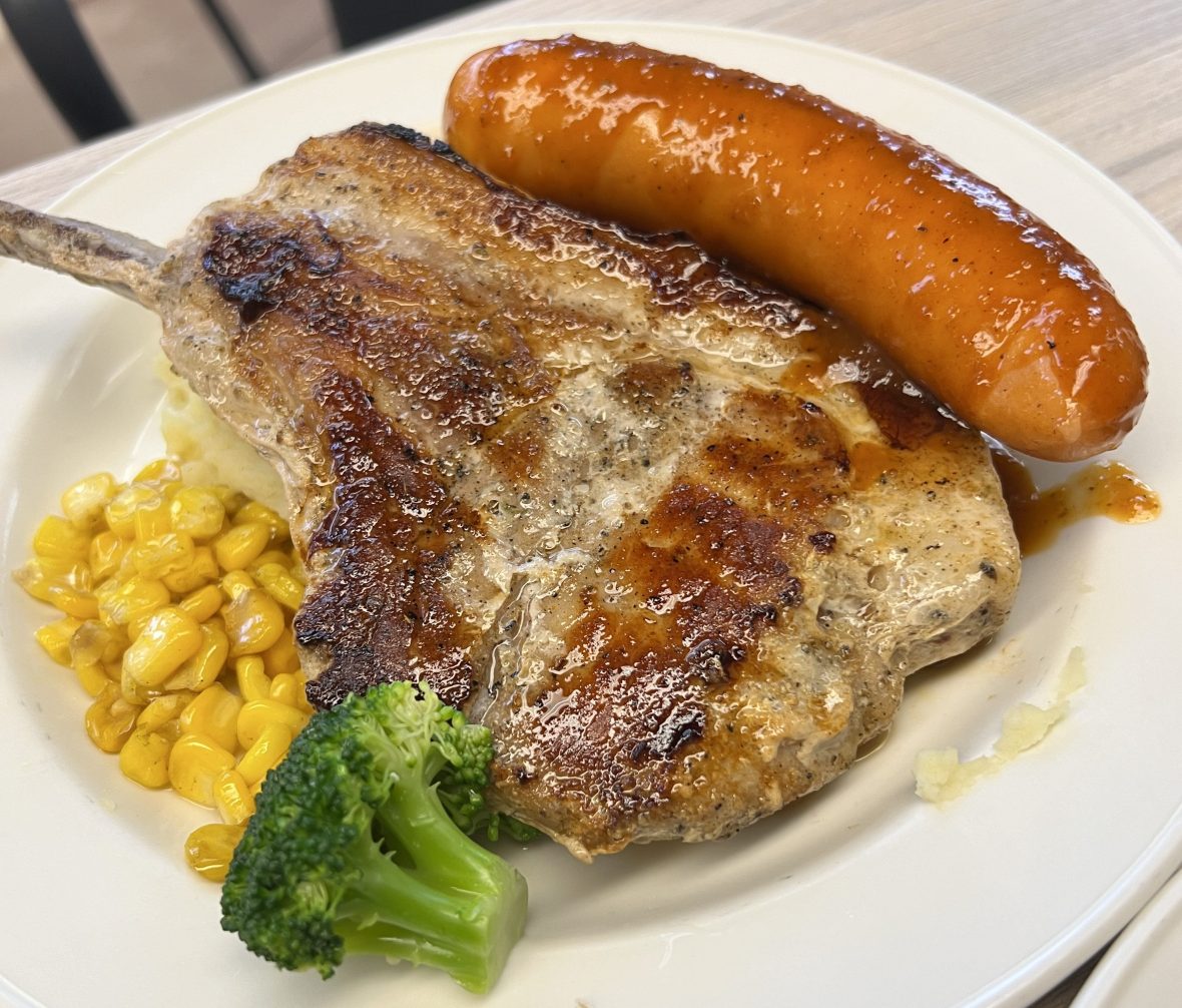 We also had a Pork Chop Tomahawk – which was also dry – and Bratwurst.