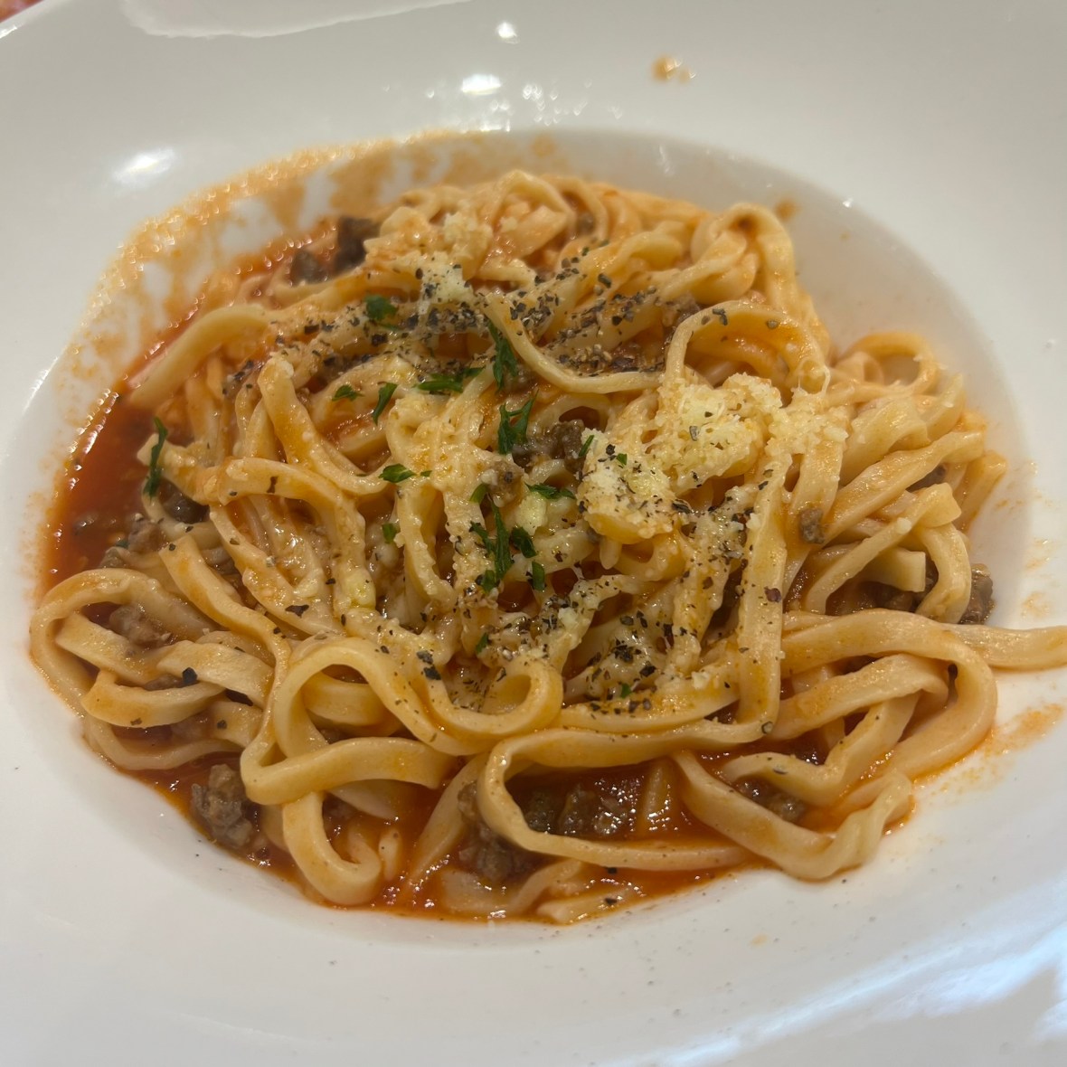 Bolognese Pasta. I would rather use Classico sauce at home.