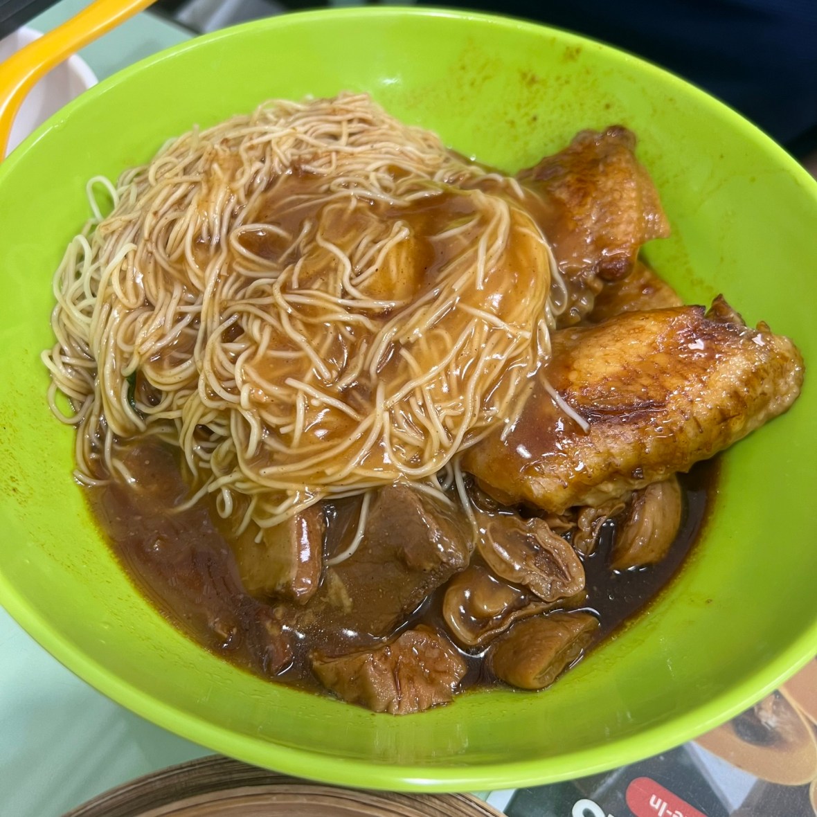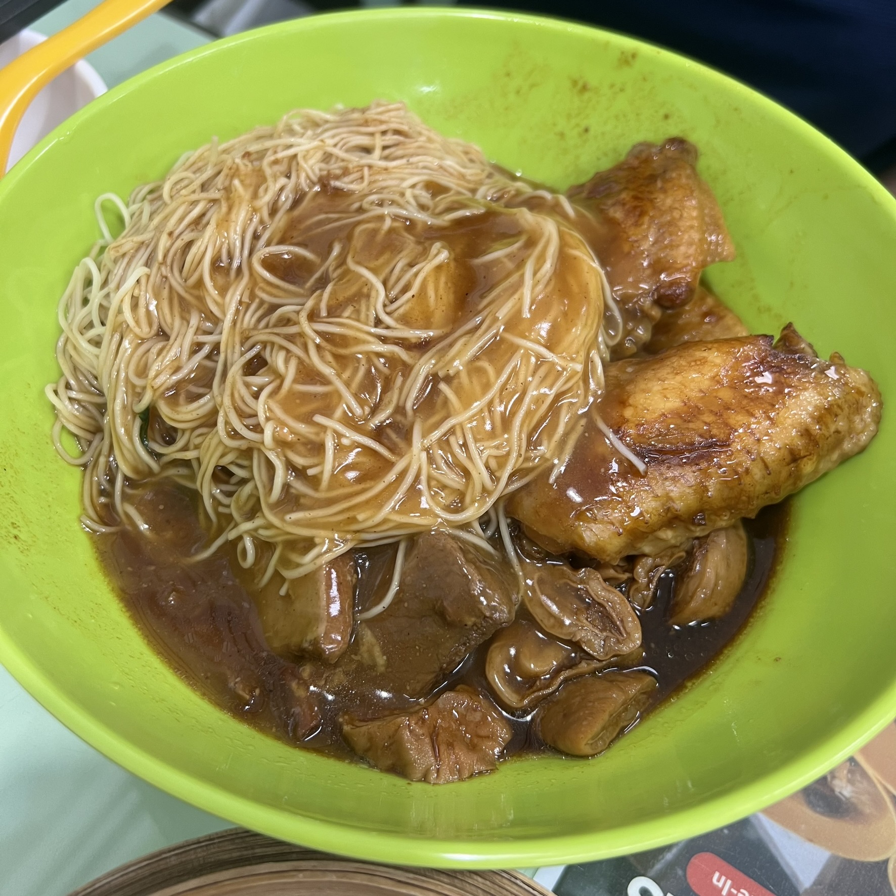 Noodles with Beef Brisket, Egg, Intestines and Chicken Wings in Satay Sauce. This is Hong Kong indeed.