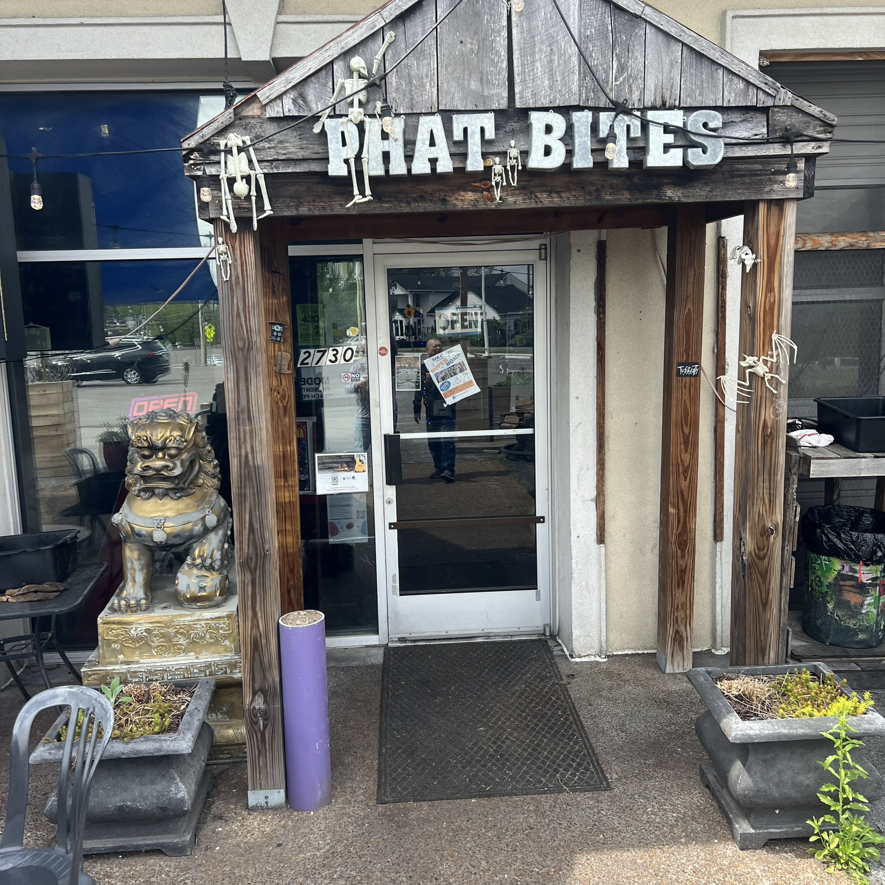 Phat Bites is a funky sandwich shop. It’s housed in an old mechanic’s garage, so it has some old items and other things that go with it.