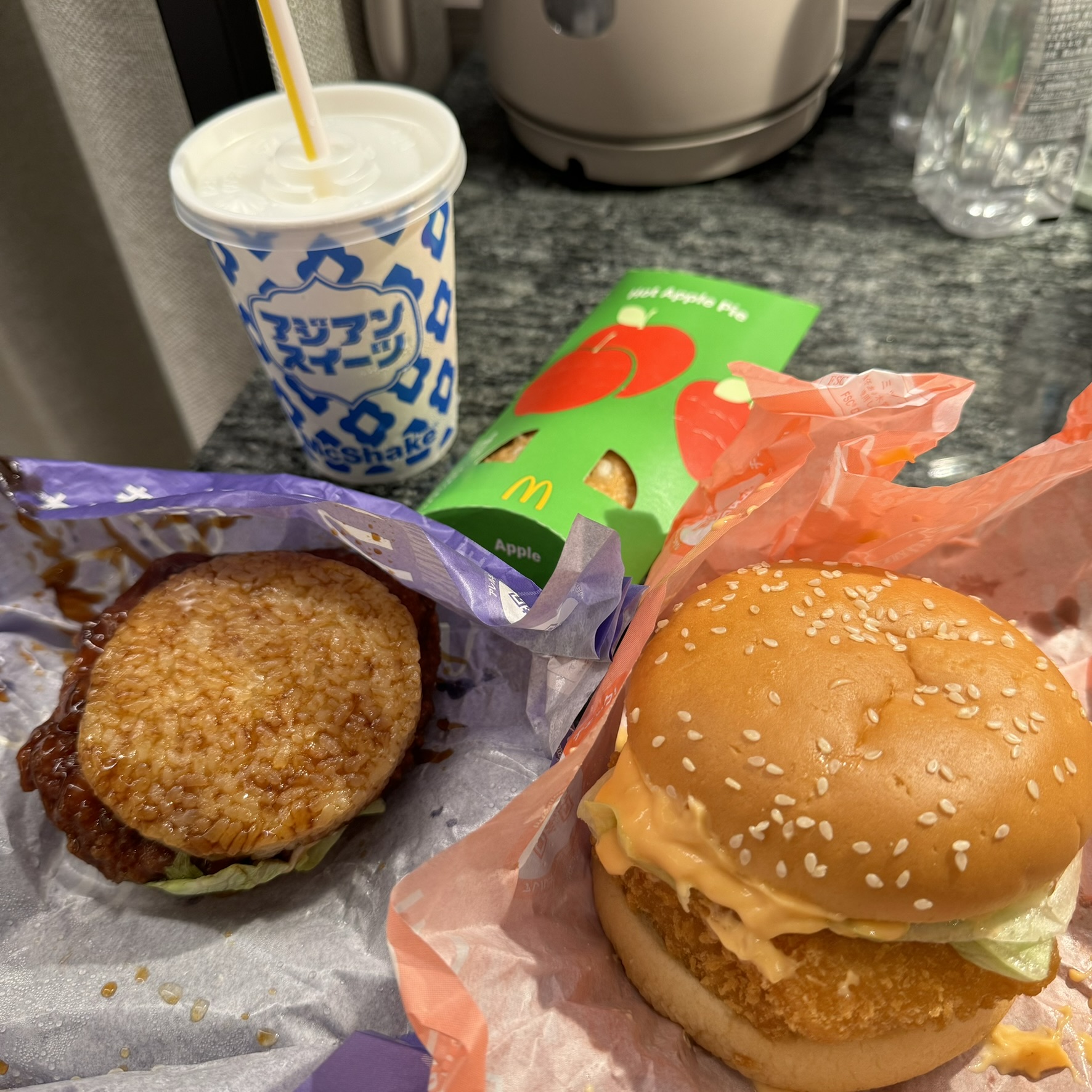 In this case we got an Ebi Burger, Chicken Teriyaki Rice Burger and a Salted Lychee Shake.