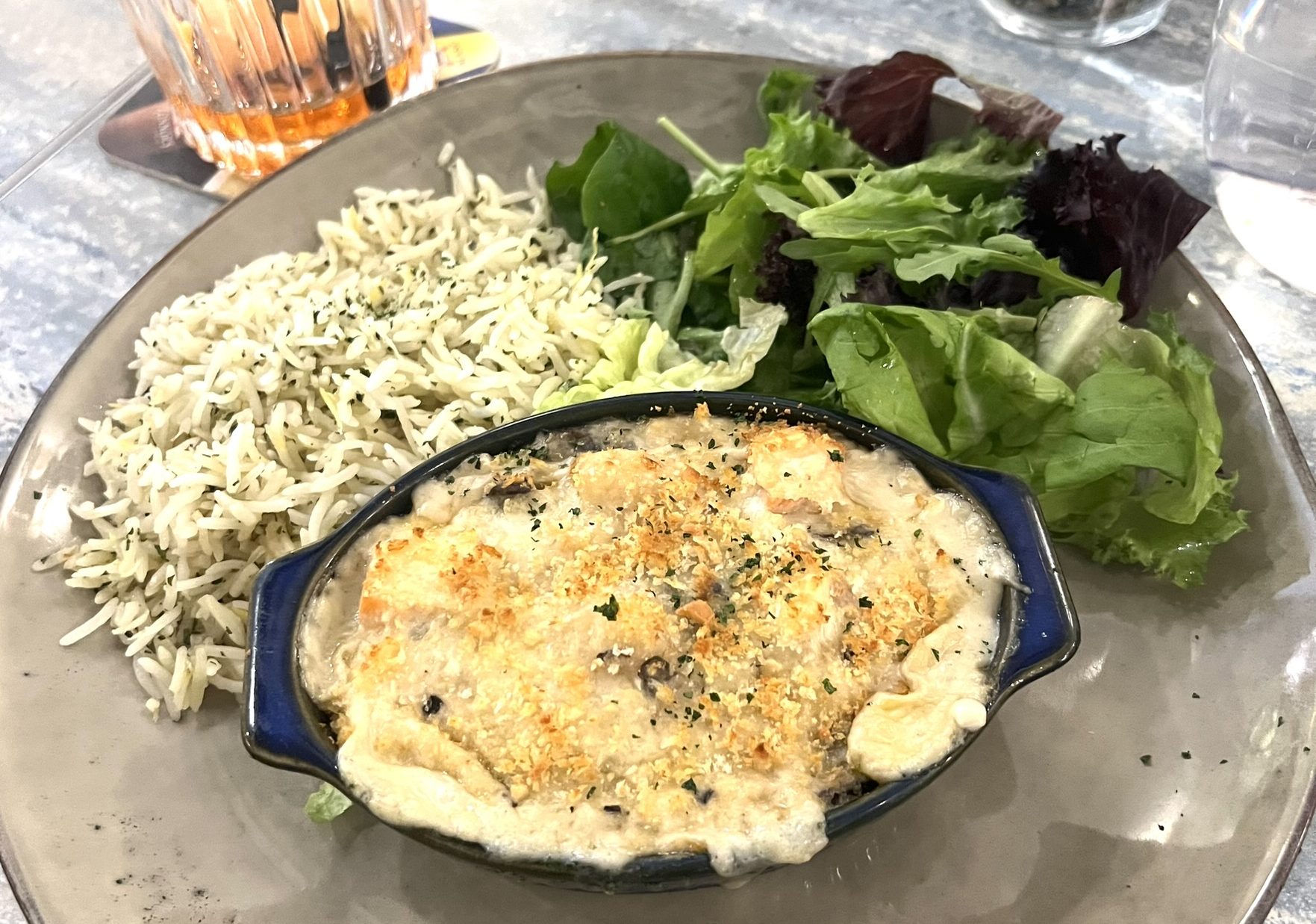 Steak, Fish, Chicken, Seafood Gratin, Lamb, Stew and Salad were all ordered and everyone enjoyed.