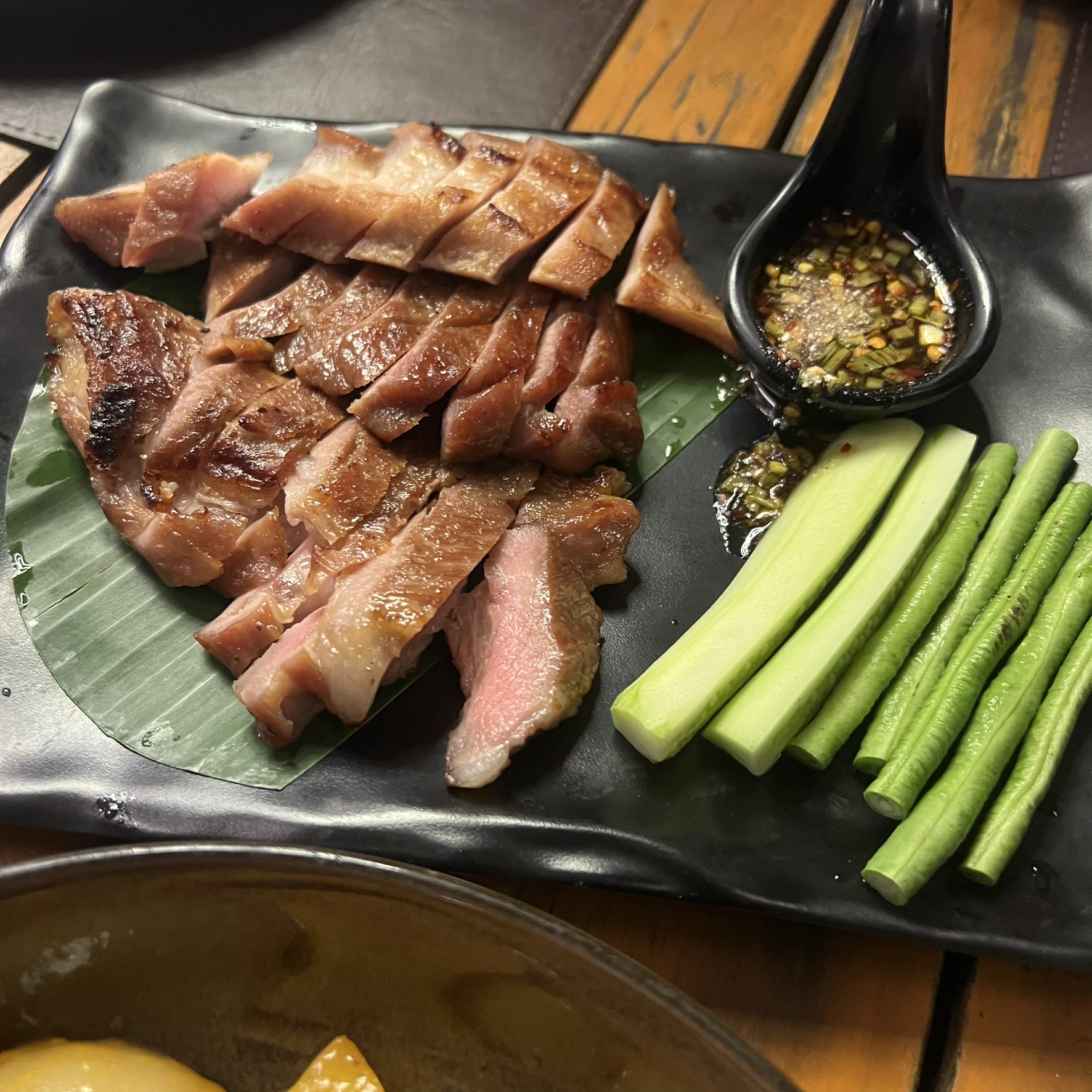 Some of my favorites were ordered – Sea Bass in Chili Lime Soup, Corn Som Tum, Tom Yum, Kao Moo Yang. These were ok for me, they didn’t seem to have the kick and real Thai taste to them.