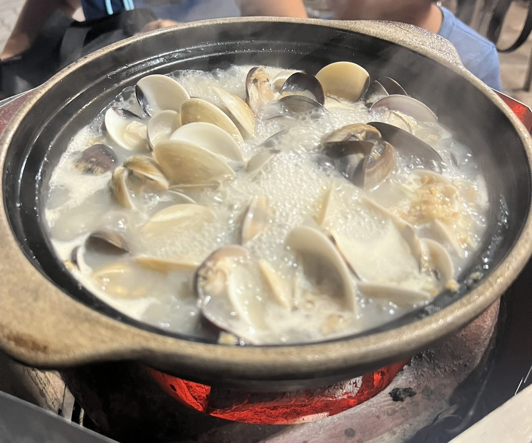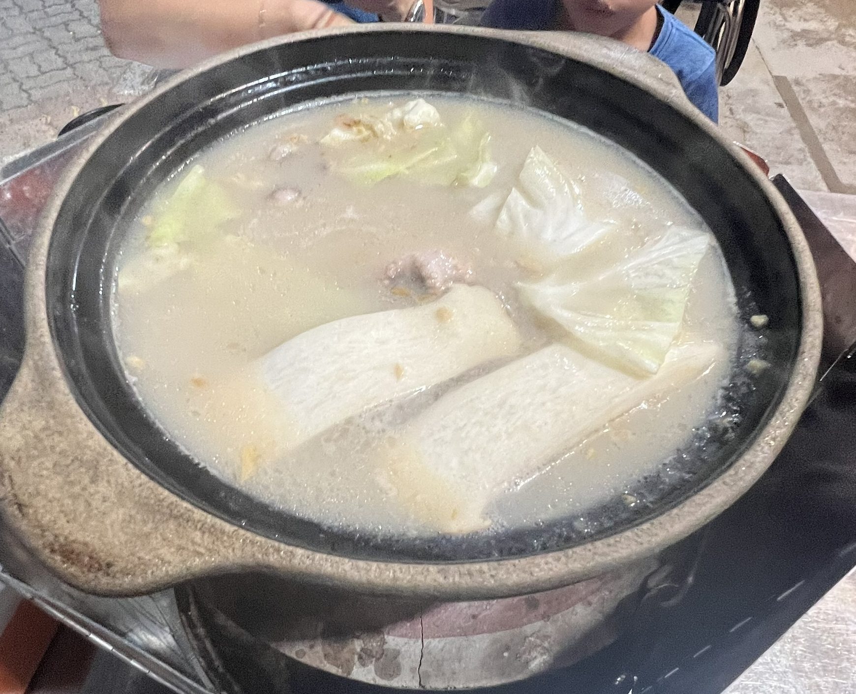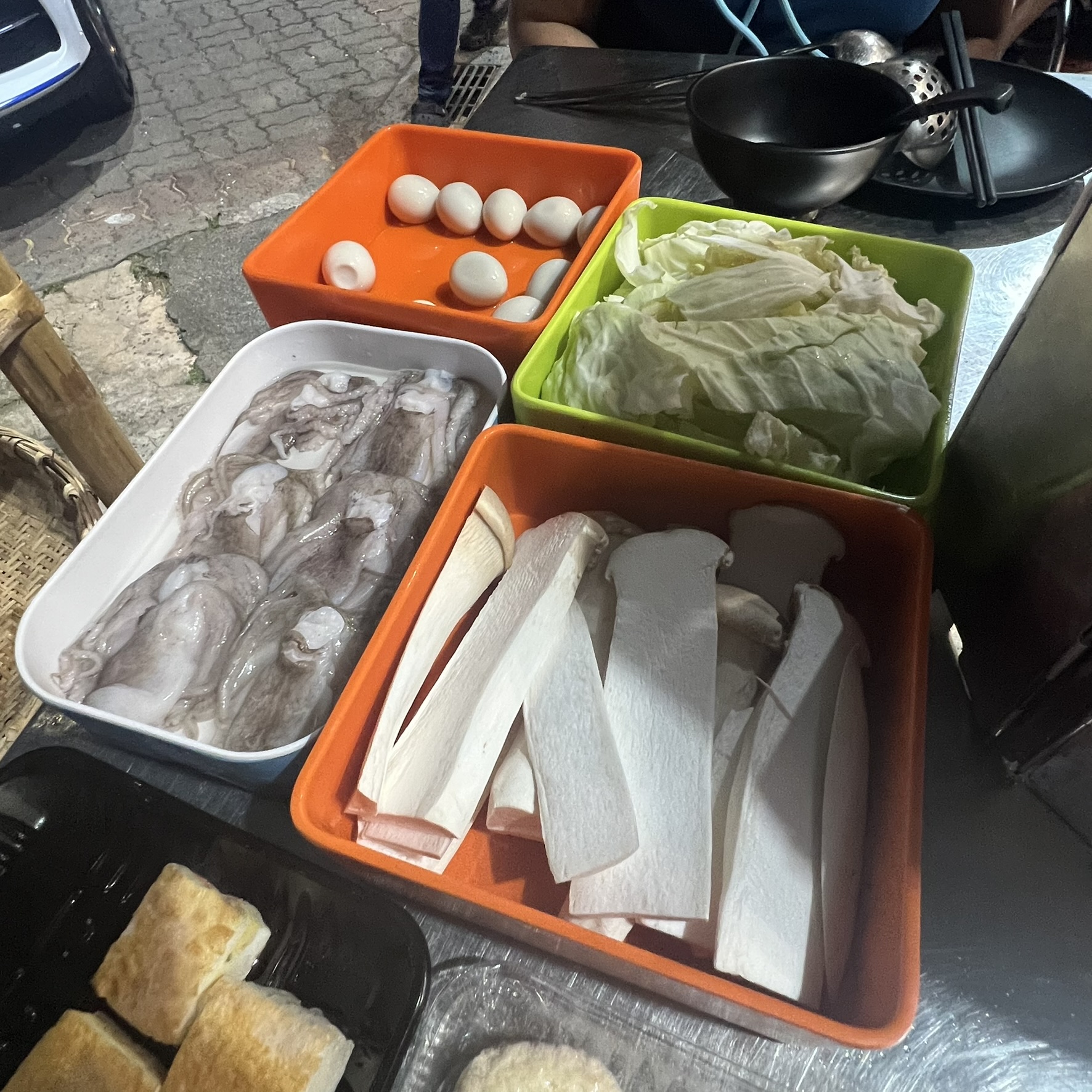 The standard La La Hot Pot, which they come and make for you by adding Wine to the La La Broth and starting it up.