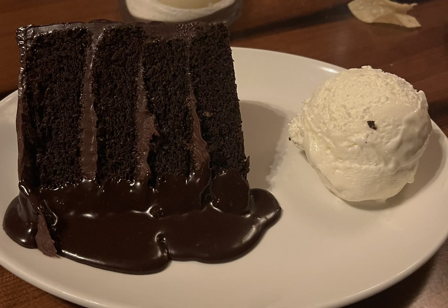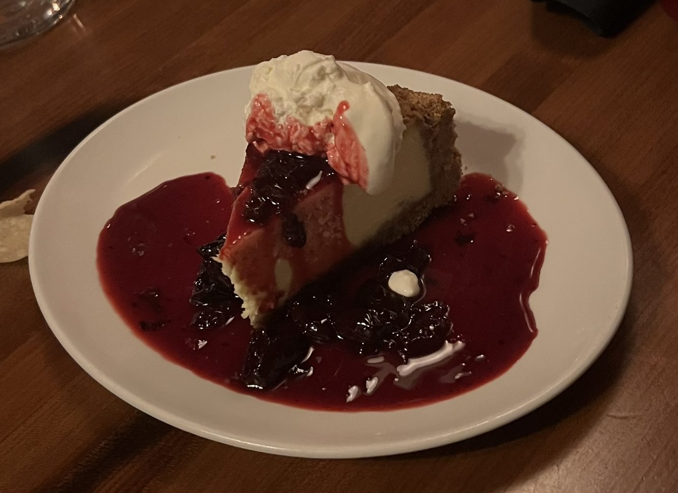 Creme Brulee, Chocolate Cake and a Berry Cheesecake. Yum!