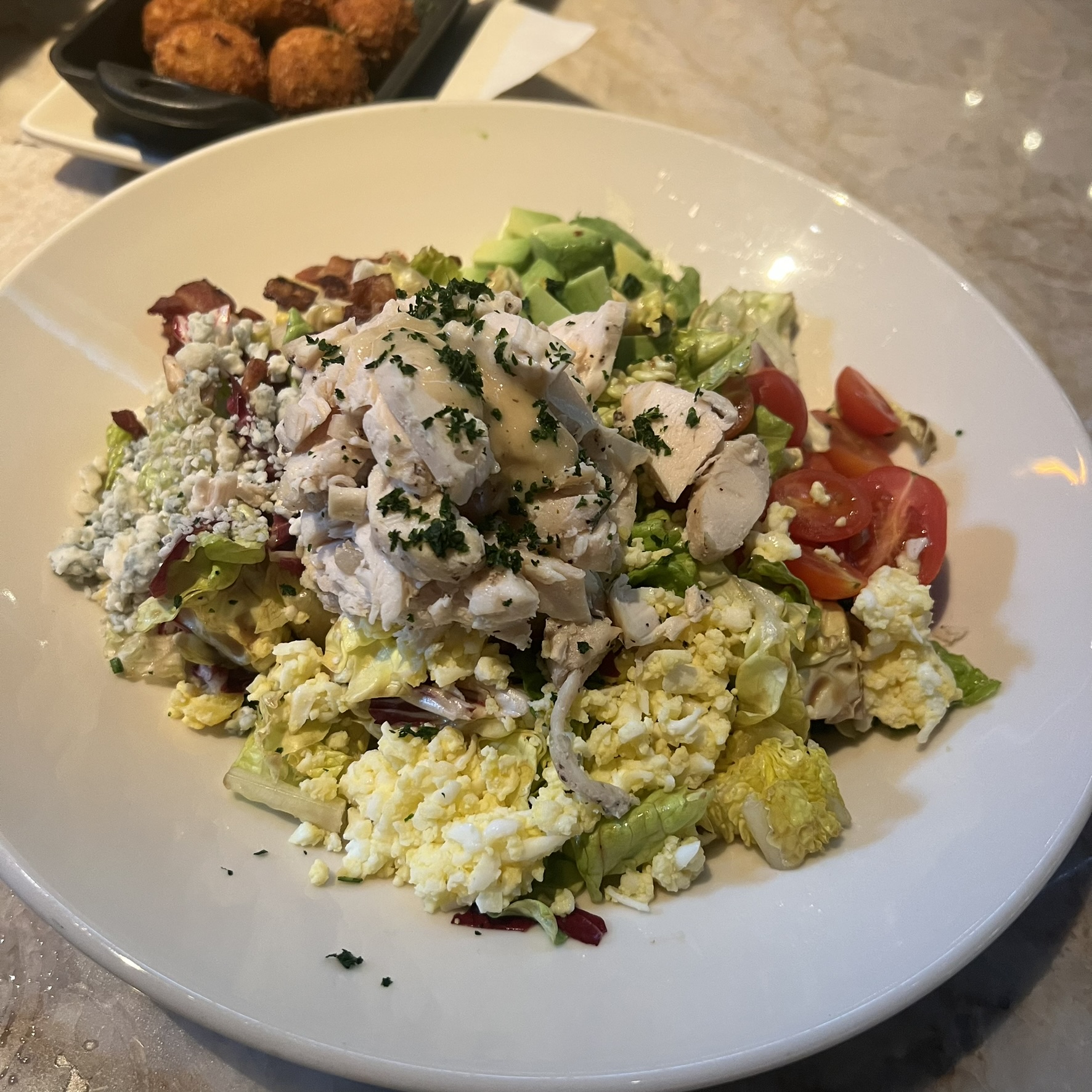 Salad and Fried Mac and Cheese.