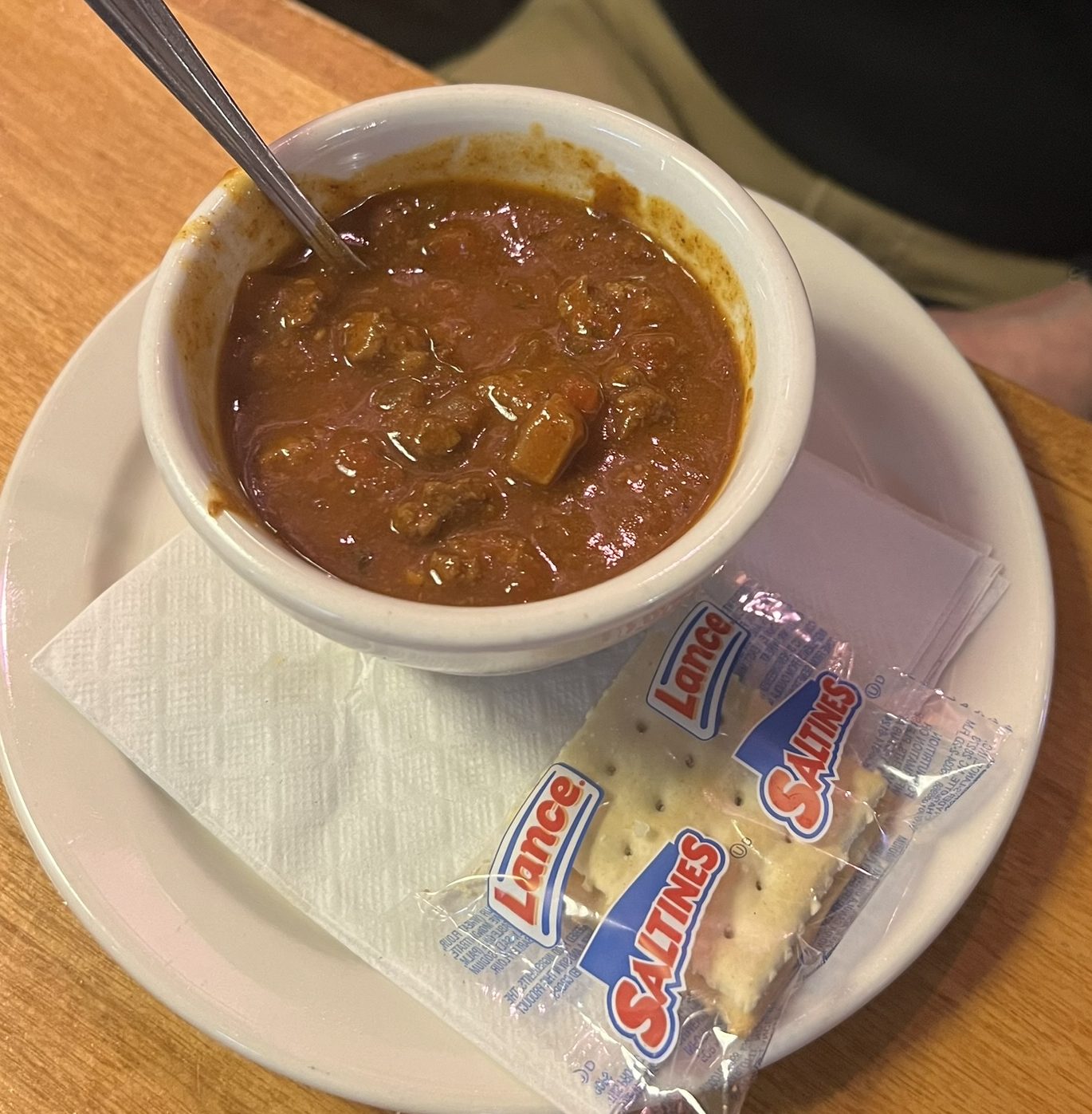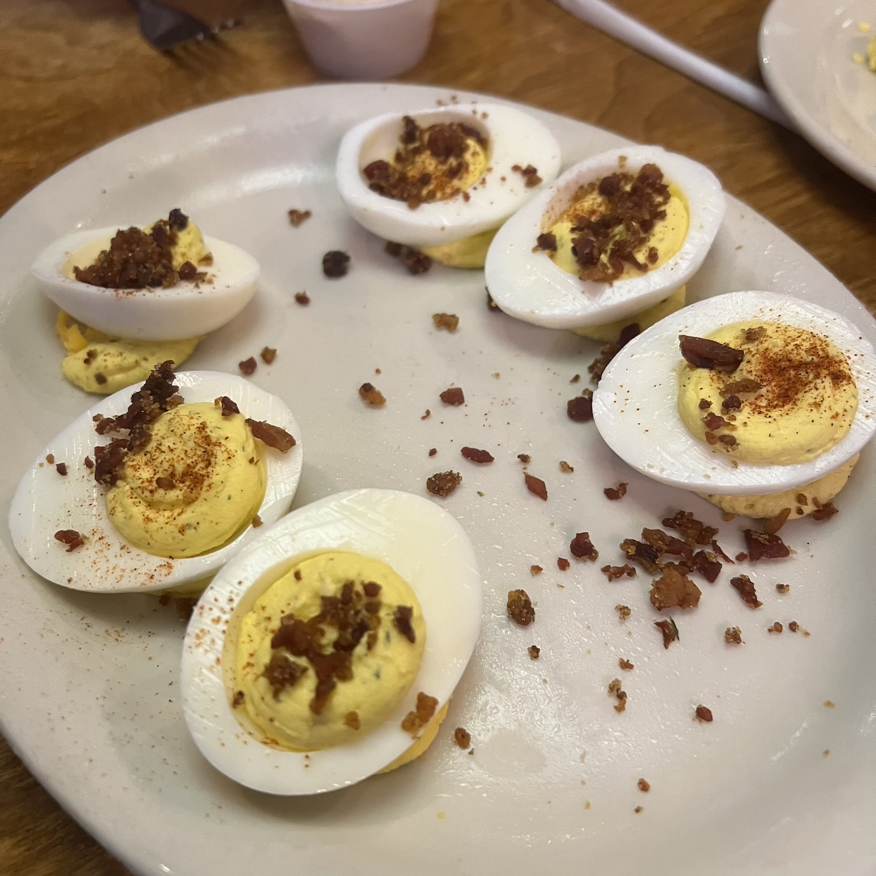 There are also Deviled Eggs and Smashed Stuffed Potato Skins and Chili.