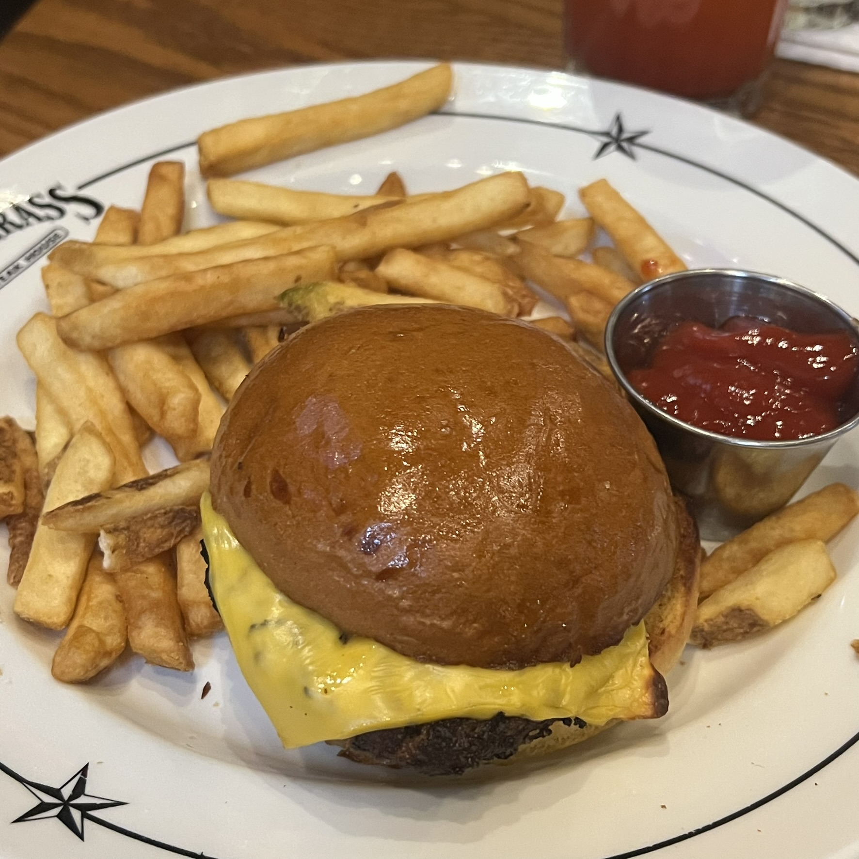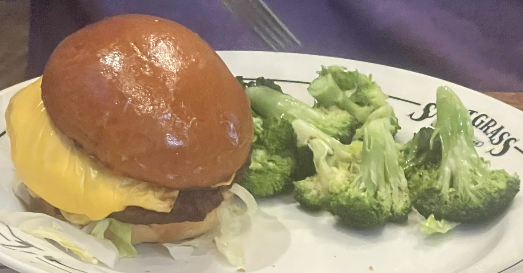 Oddly enough, none of us had steaks! But my son did get a Cheeseburger and Fries. And my Mom got a Cheeseburger and Broccoli.