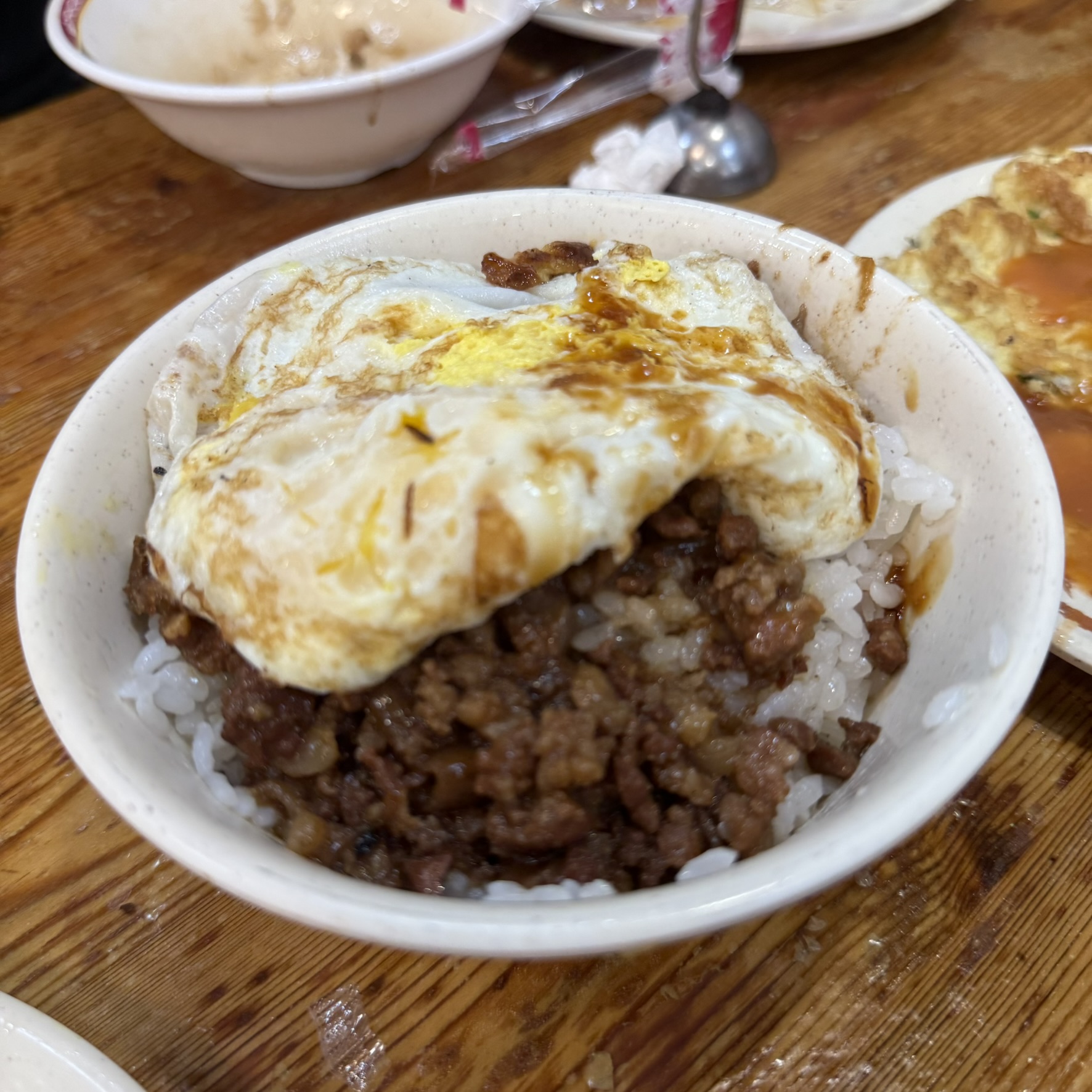 One of the staples of Taiwanese food – Lu Rou Fan. Here we got it with and without egg. Beautiful.