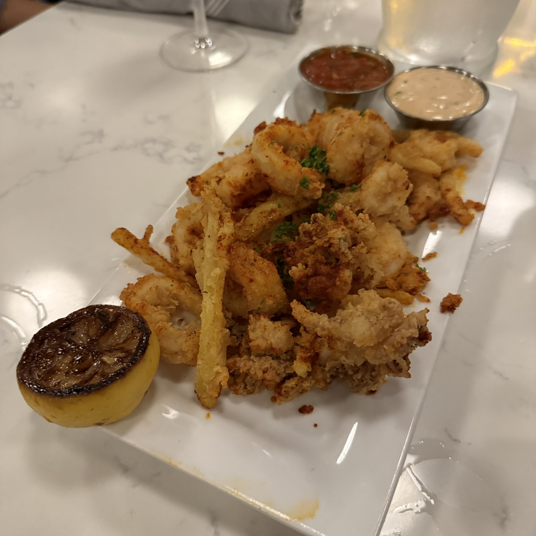 As for Starters, a Charcuterie Board, Fried Seafood Mix, Bread and Garlic Bread. All very fresh and good!