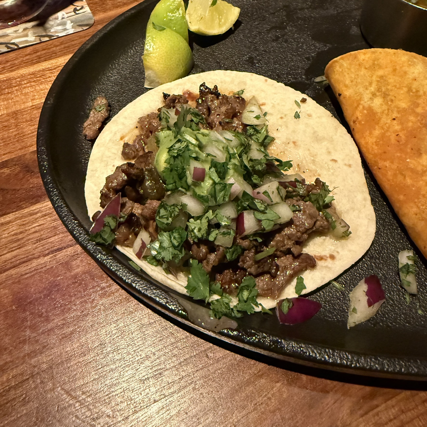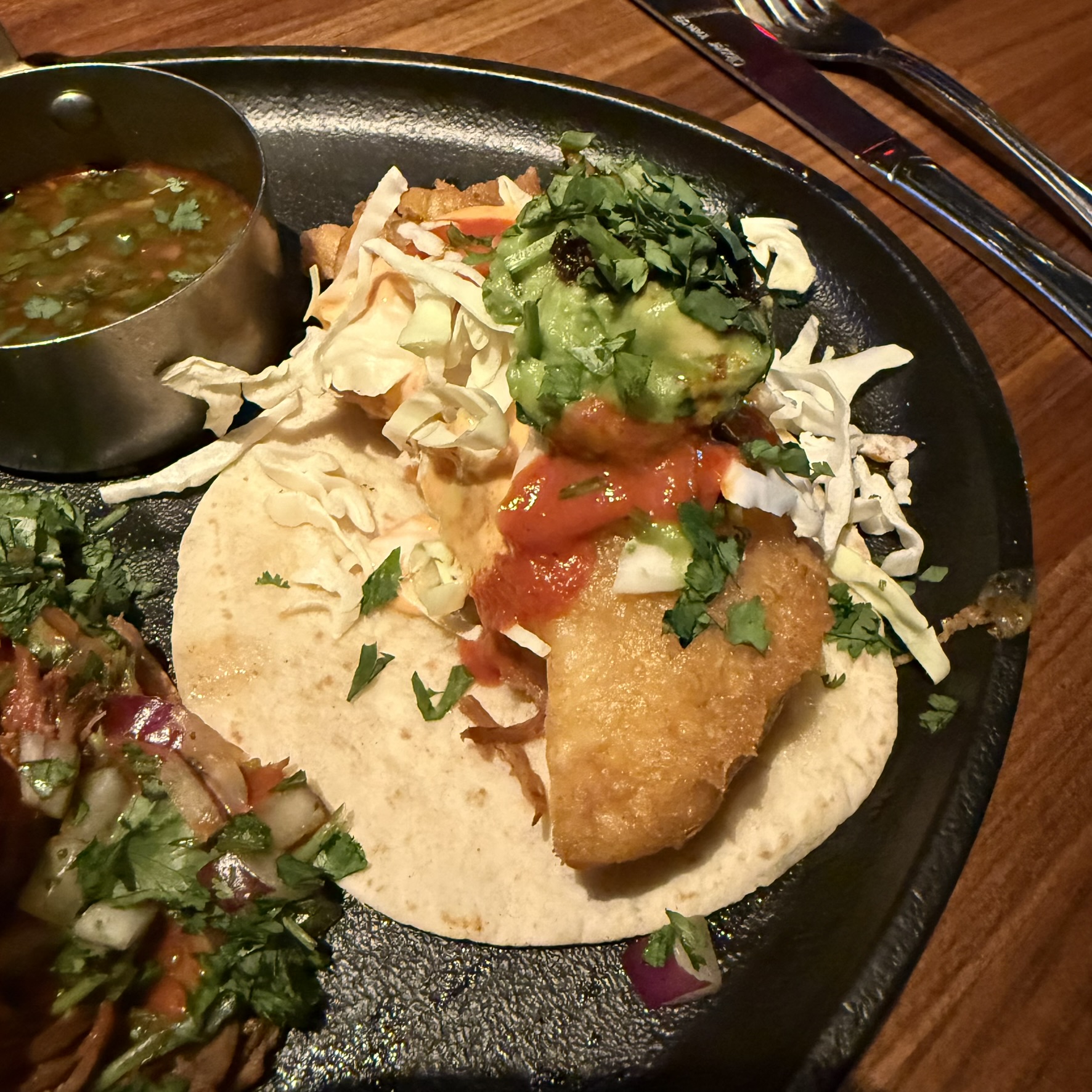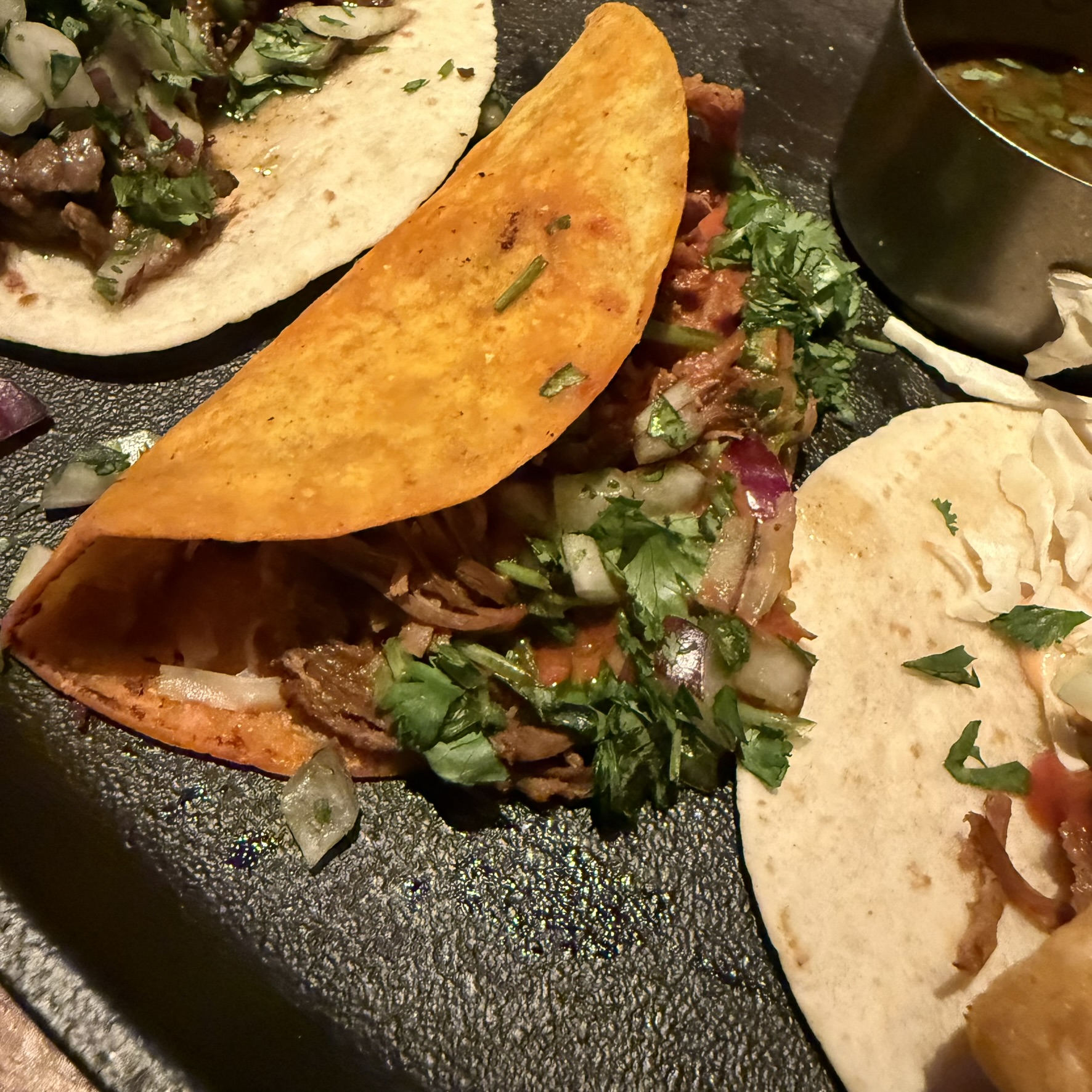 Fish Taco, Birria Taco and Carnitas. Really good Tex-Mex!