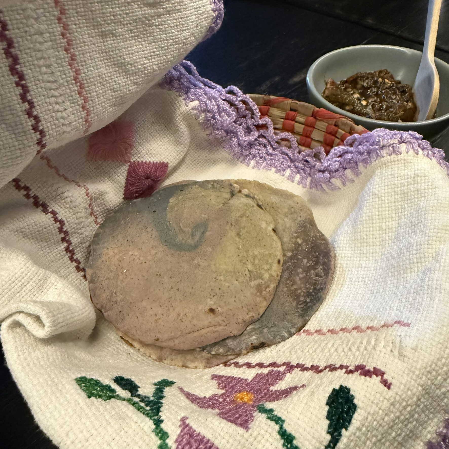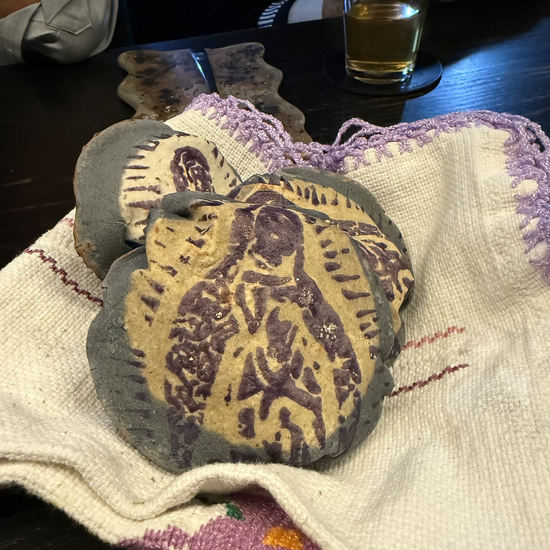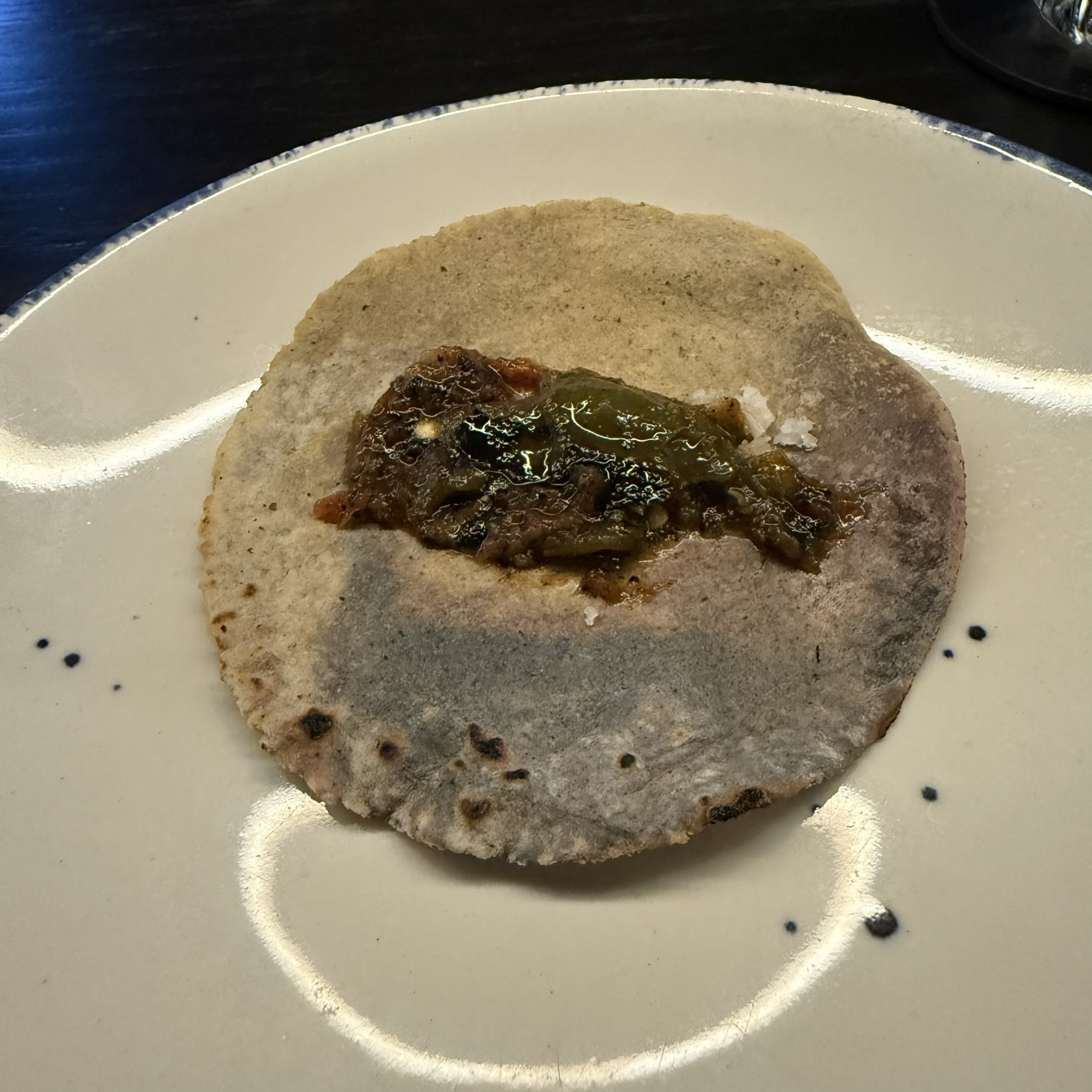 Some Blue Corn Tortillas with a Pepper Salsa. Not bad, just not enough. I wanted more!