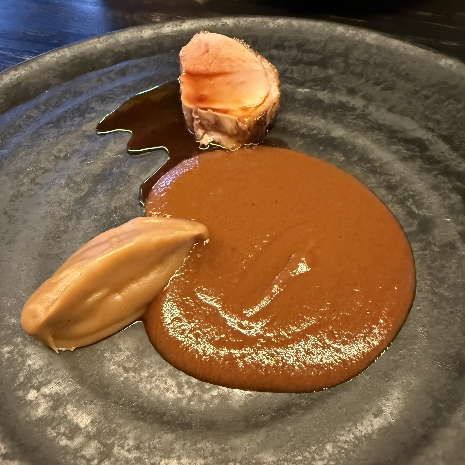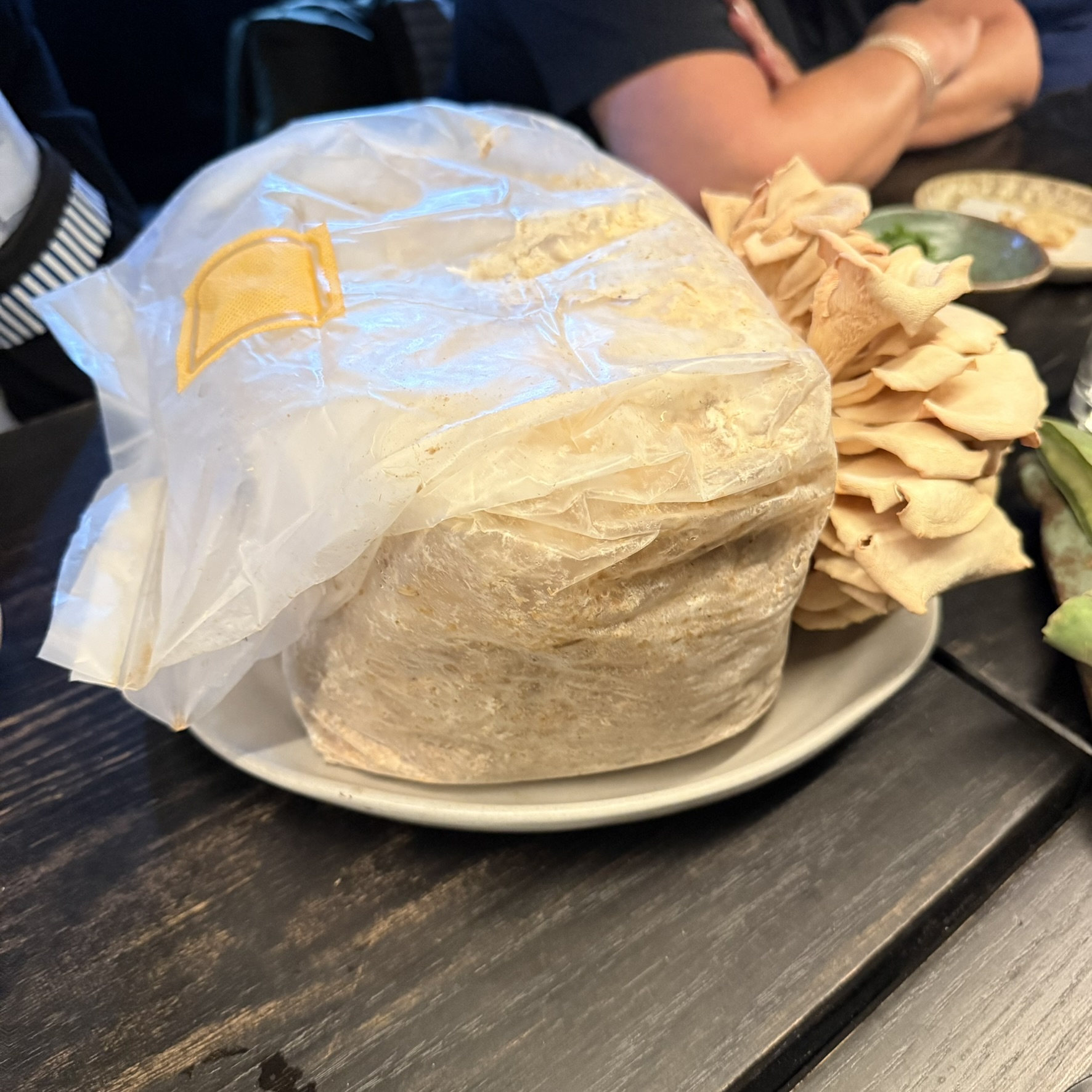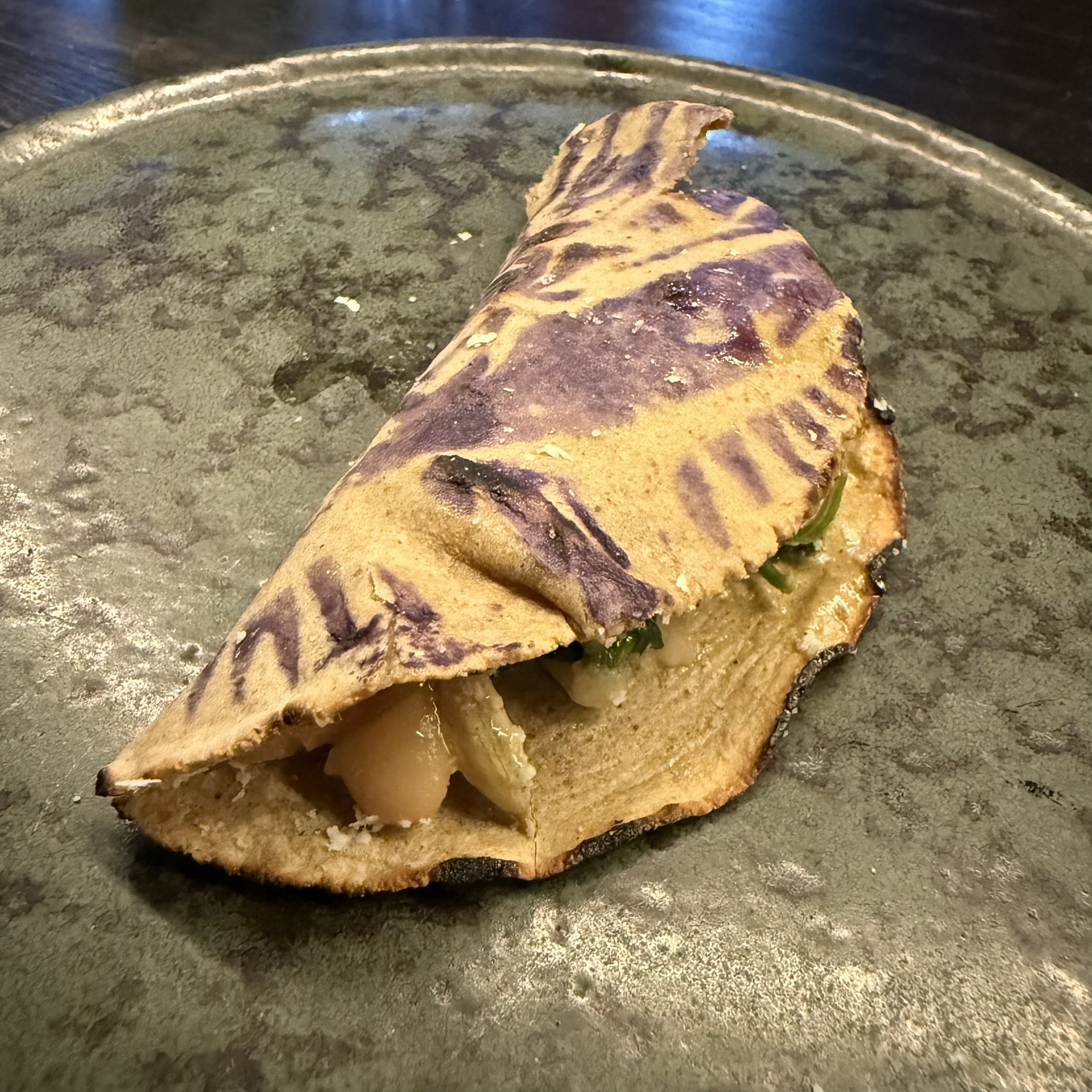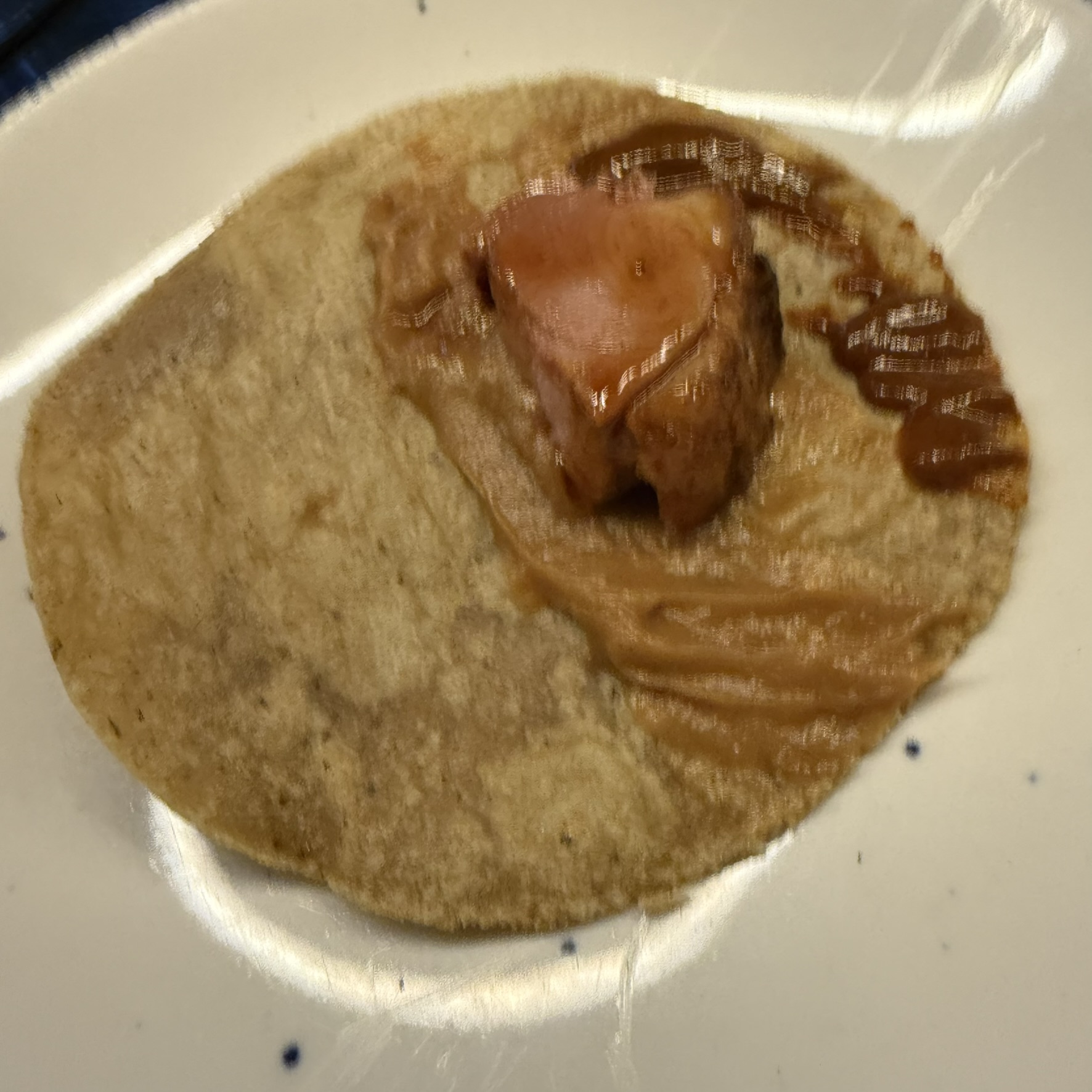 Duck Breat with sauce. Wrap it in a Mother Mary Tortilla. This was for 2 people! Not enough!
