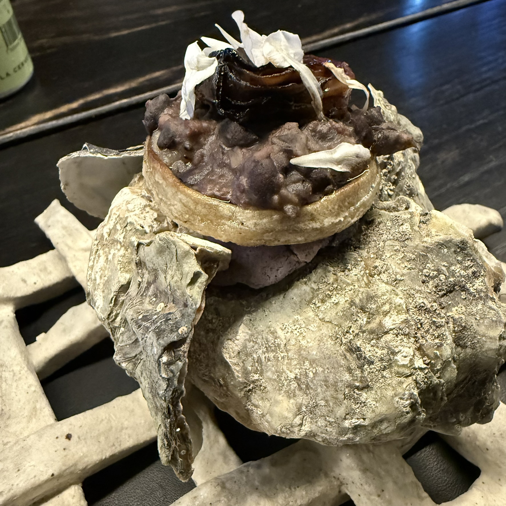 A Bean Mixture topped with an Oyster. Not my taste on the combination at all.