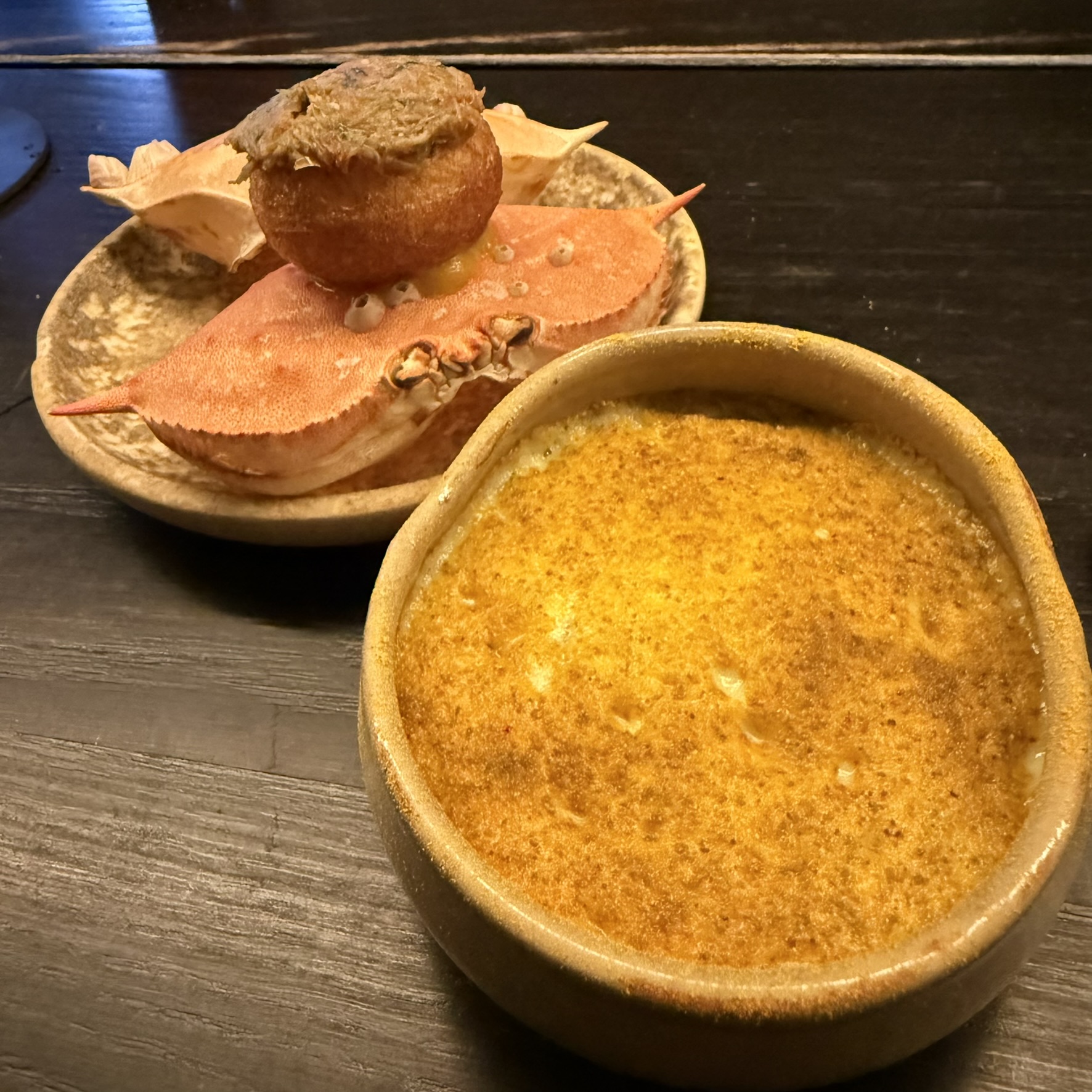 A Crab Mousse with a Crab Bisque. I was good with this.