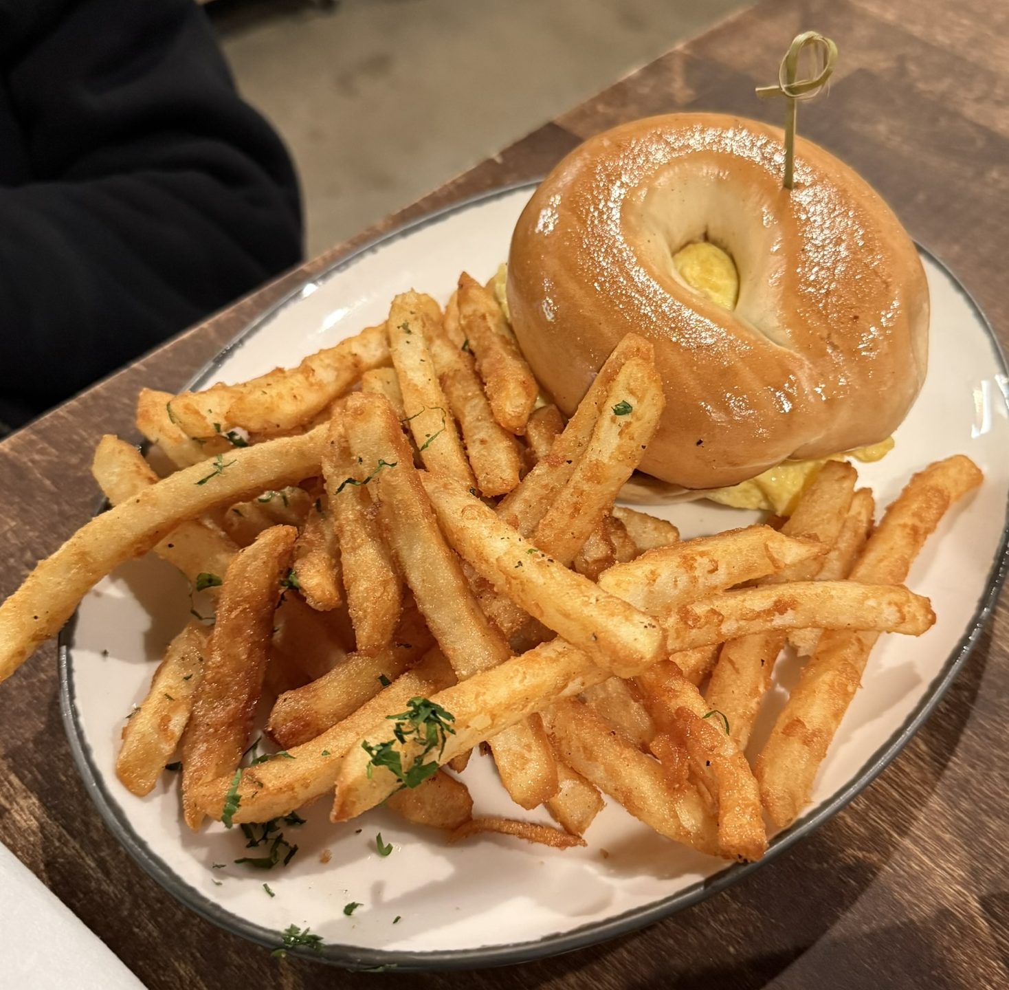 A Breakfast Bagel with Eggs and Bacon – really nice.